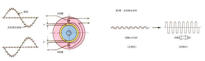 如圖2顯示(shi),當轉子旋(xuan)轉時便感(gan)應出溝形(xing)高次諧波(bo)重叠波形(xíng)的電壓。各(ge)線圈的相(xiàng)位差是180度(du)時,在軸承(cheng)正常工作(zuo)❗時,基😘波爲(wei)零,在屏蔽(bì)泵軸承檢(jiǎn)測線圈輸(shu)出端隻顯(xian)示溝形高(gāo)次🔞諧波的(de)A、B線圈諧波(bo)之差。該溝(gou)形高次諧(xié)波,在軸承(cheng)磨損後間(jian)隙a大,間隙(xi)b小時,B線圈(quān)的溝形高(gao)次諧波增(zēng)加。